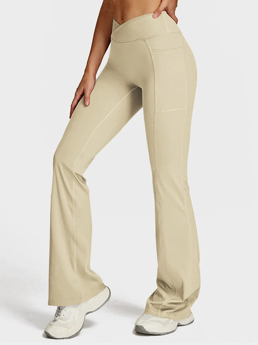 Arivelle Flared Yoga Pants with Slit Hem