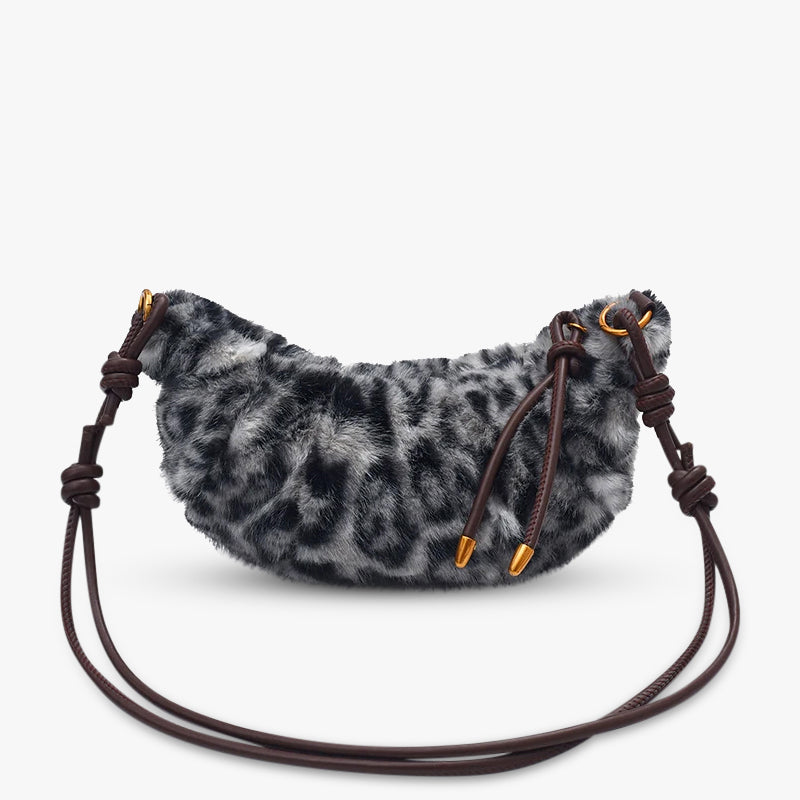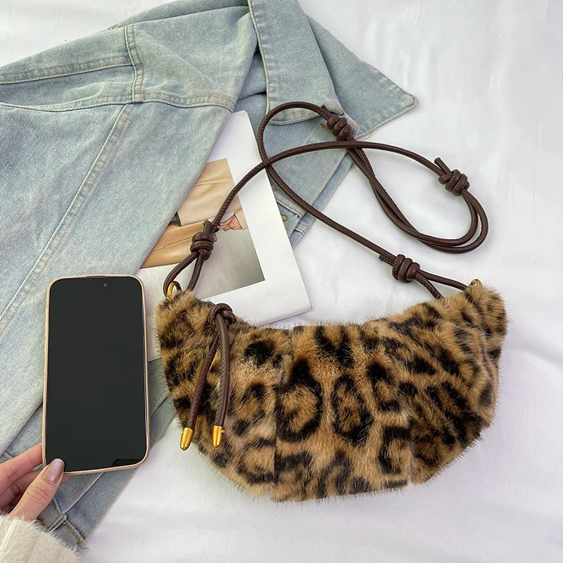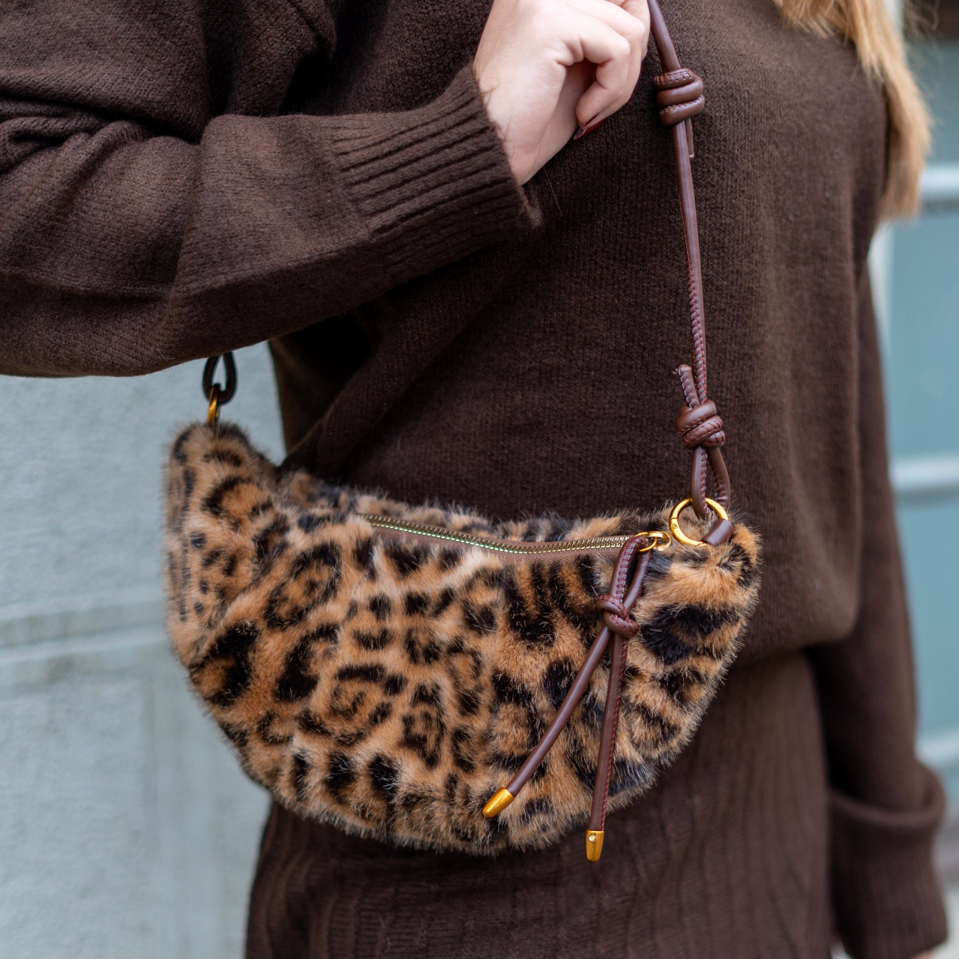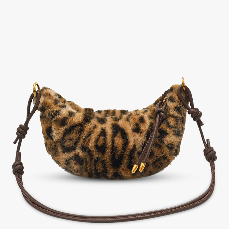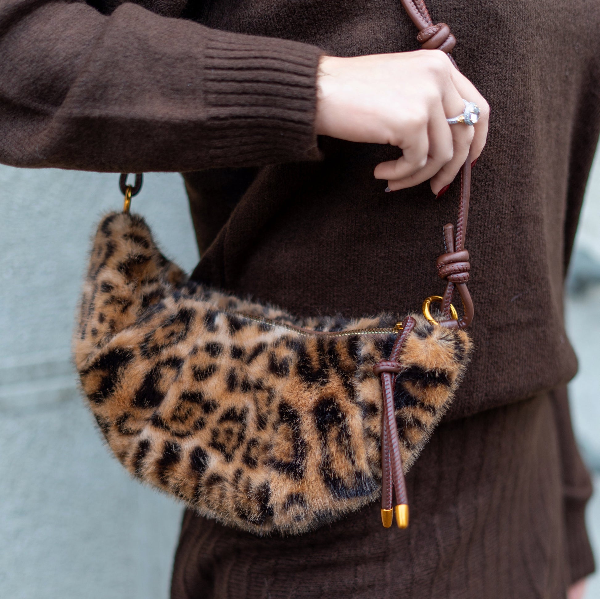 Crafted from velvety leopard-patterned faux fur, this bag is designed to make you stand out while staying luxuriously soft to the touch. Its chic saddle silhouette blends trend with timelessness, perfect for adding a touch of wild sophistication to any outfit.