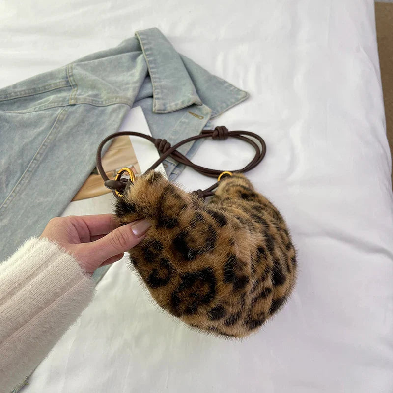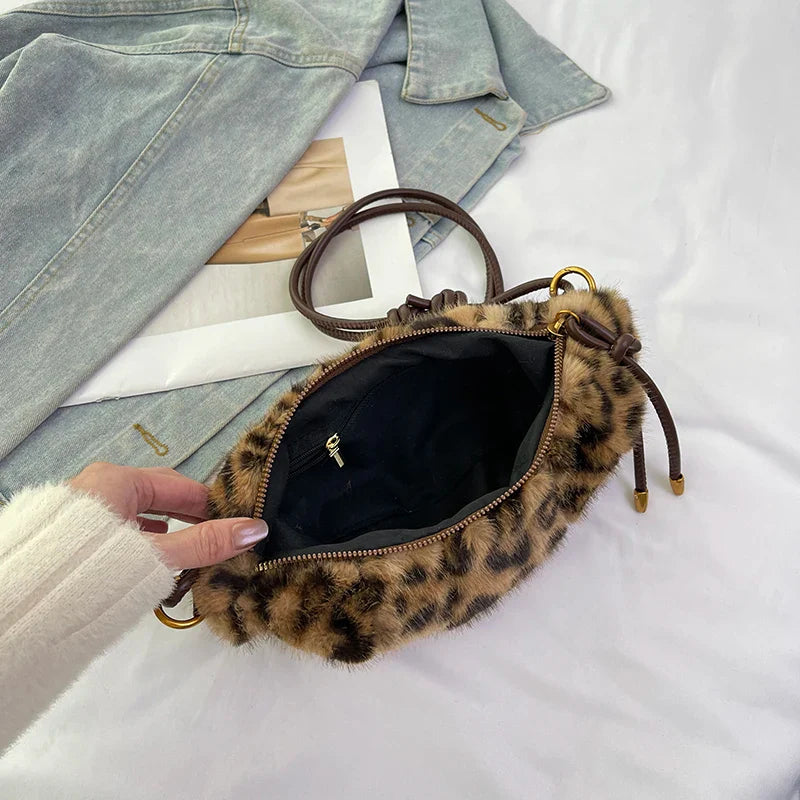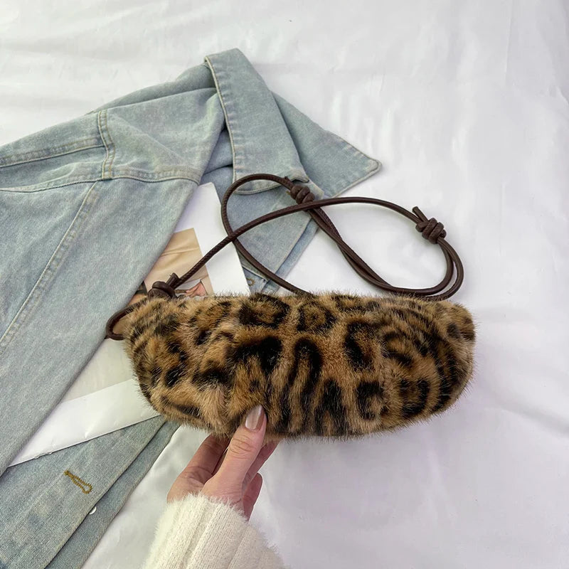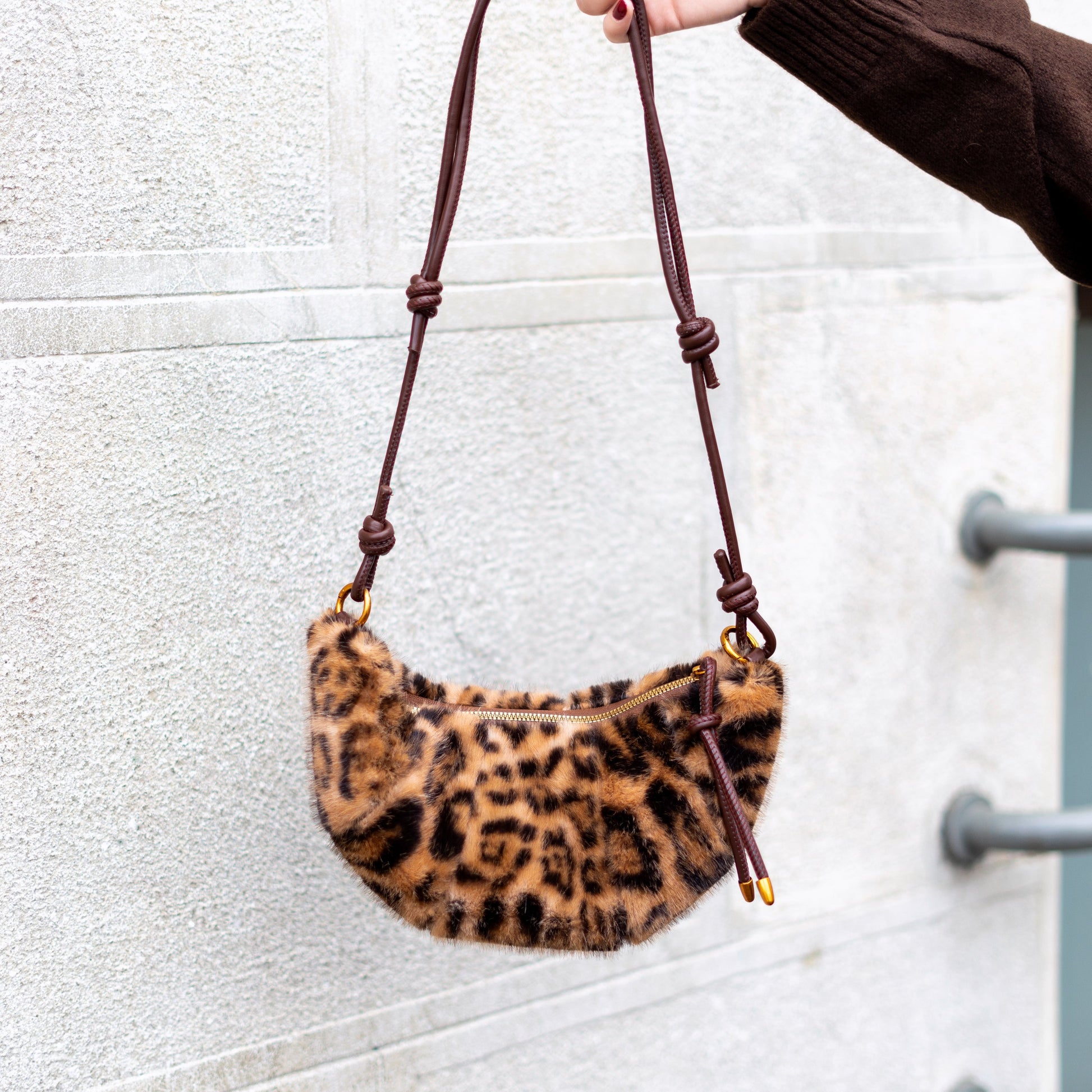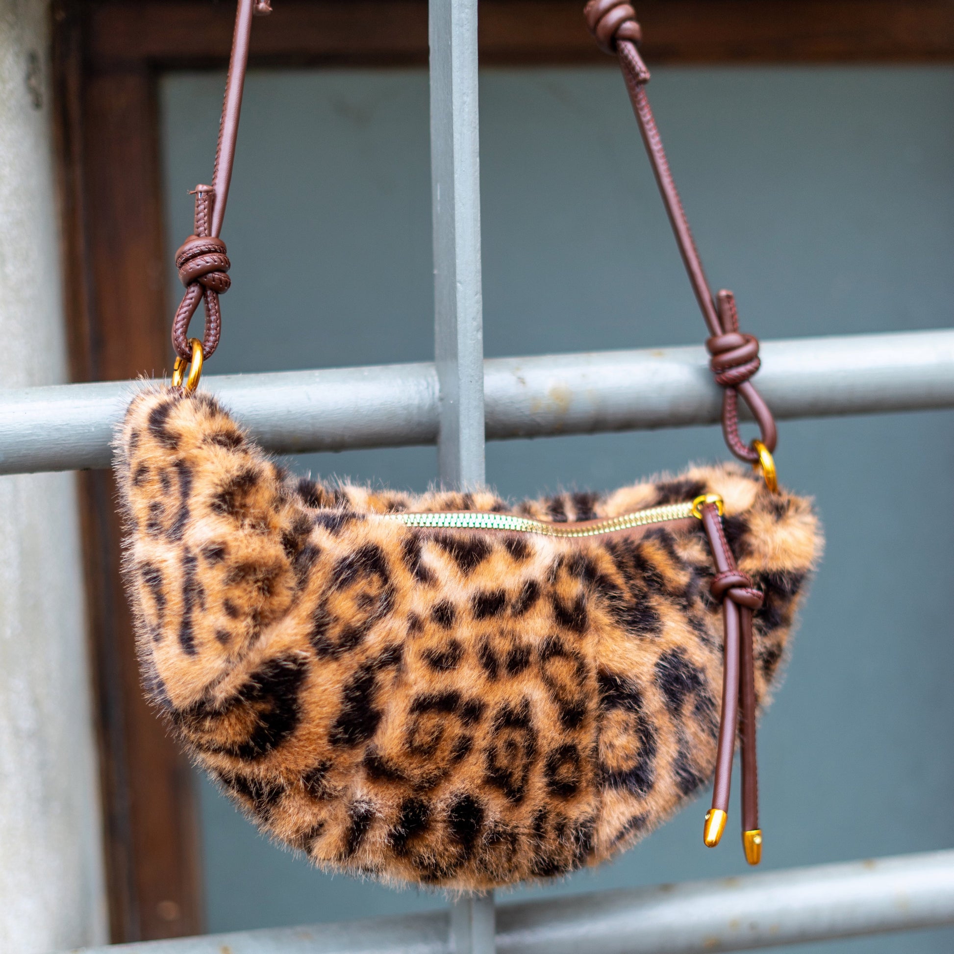 Crafted from velvety leopard-patterned faux fur, this bag is designed to make you stand out while staying luxuriously soft to the touch. Its chic saddle silhouette blends trend with timelessness, perfect for adding a touch of wild sophistication to any outfit.