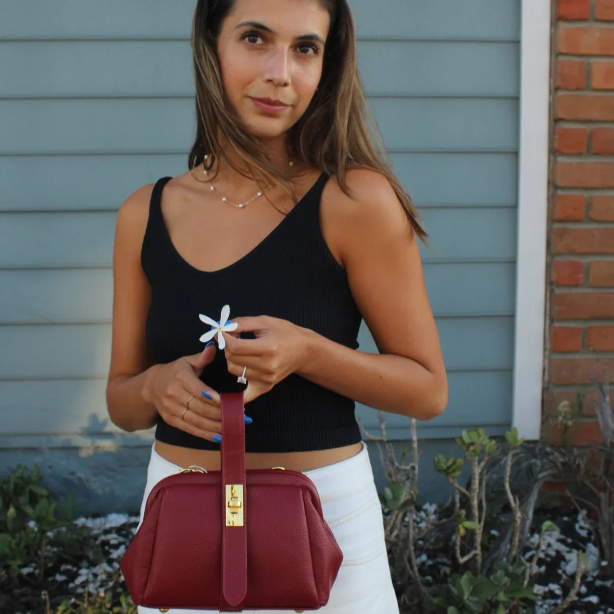 Crafted from premium vegan leather with a softly structured silhouette, this petite beauty is as durable as she is chic. The textured finish adds dimension, while the gold-tone clasp lends a touch of understated luxury.