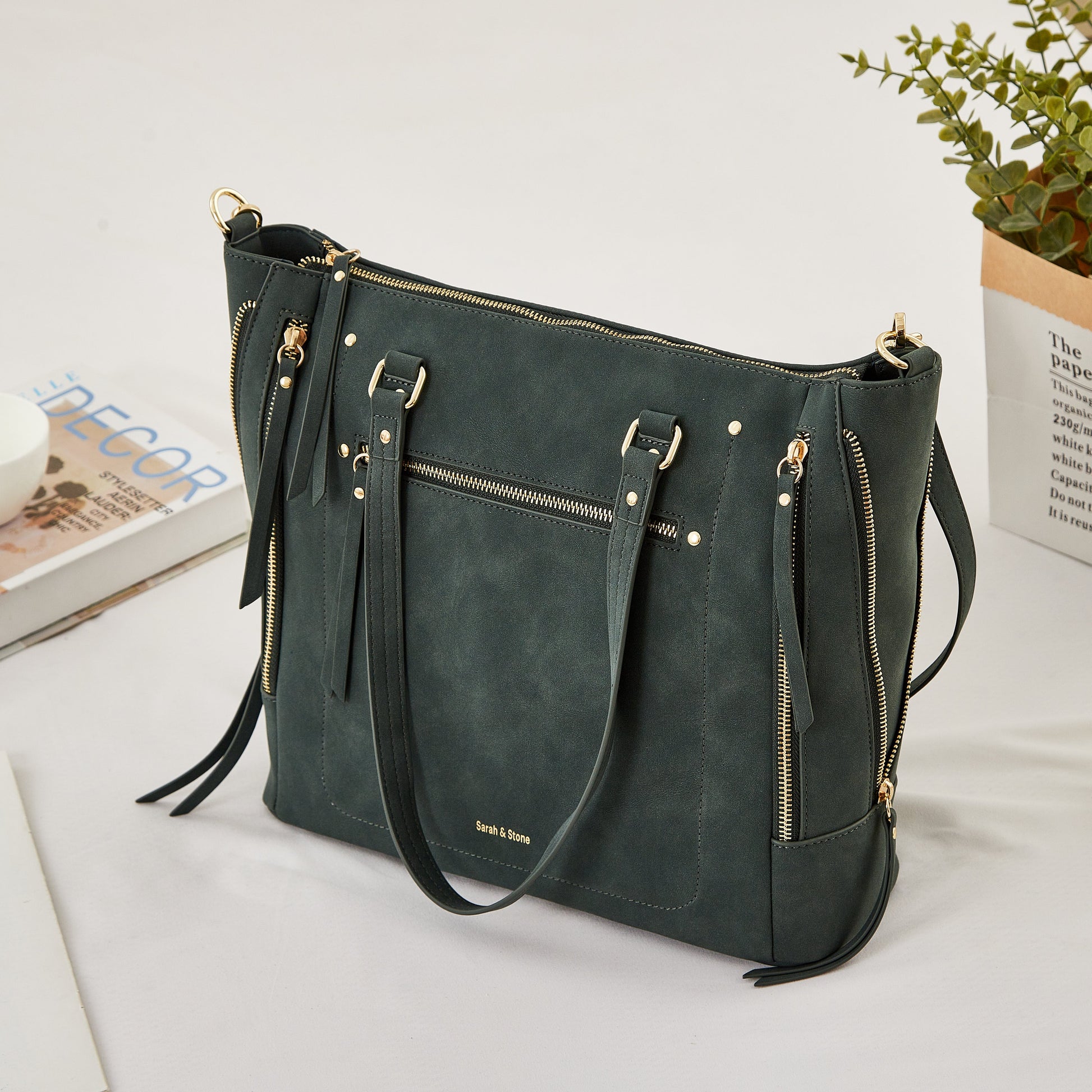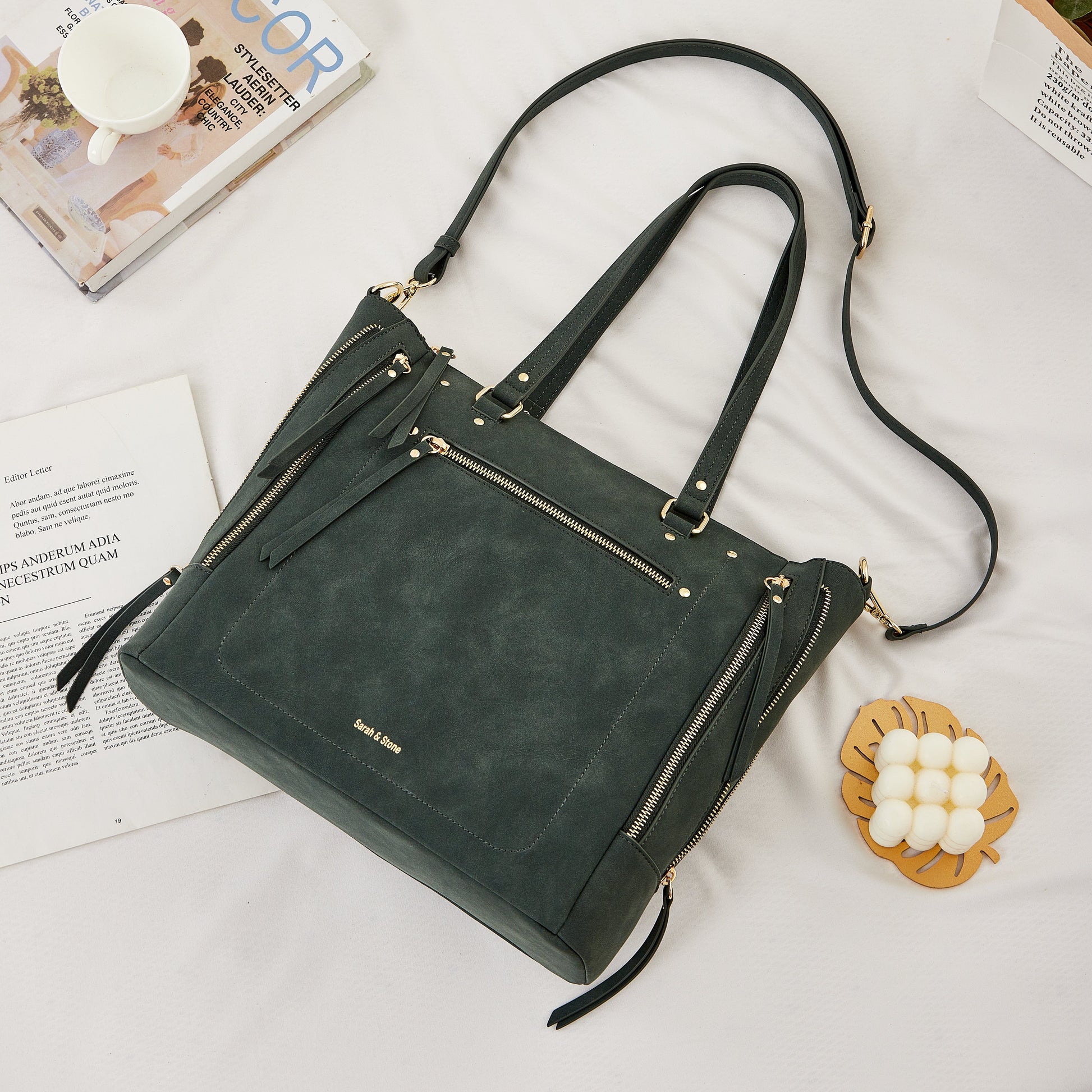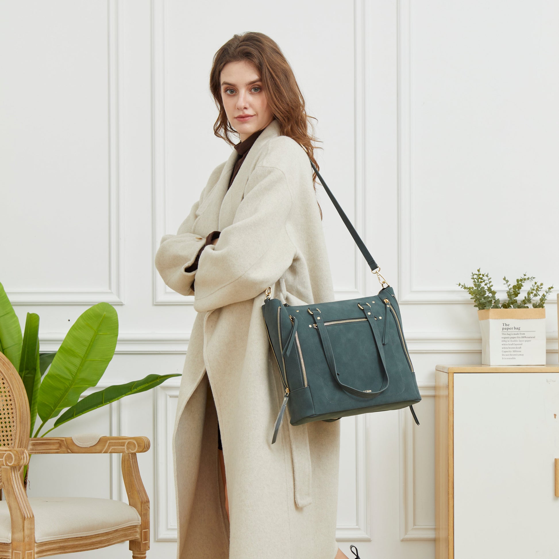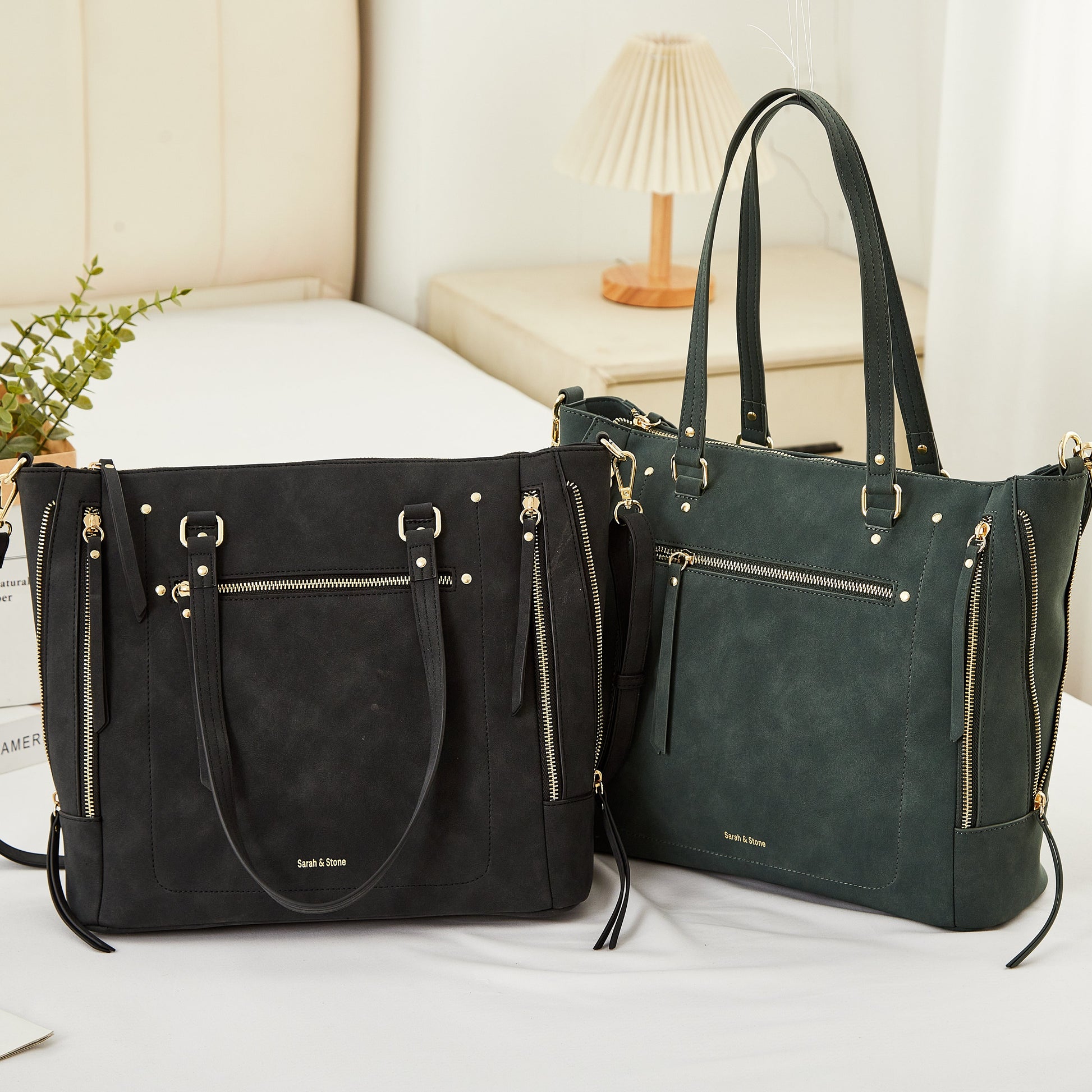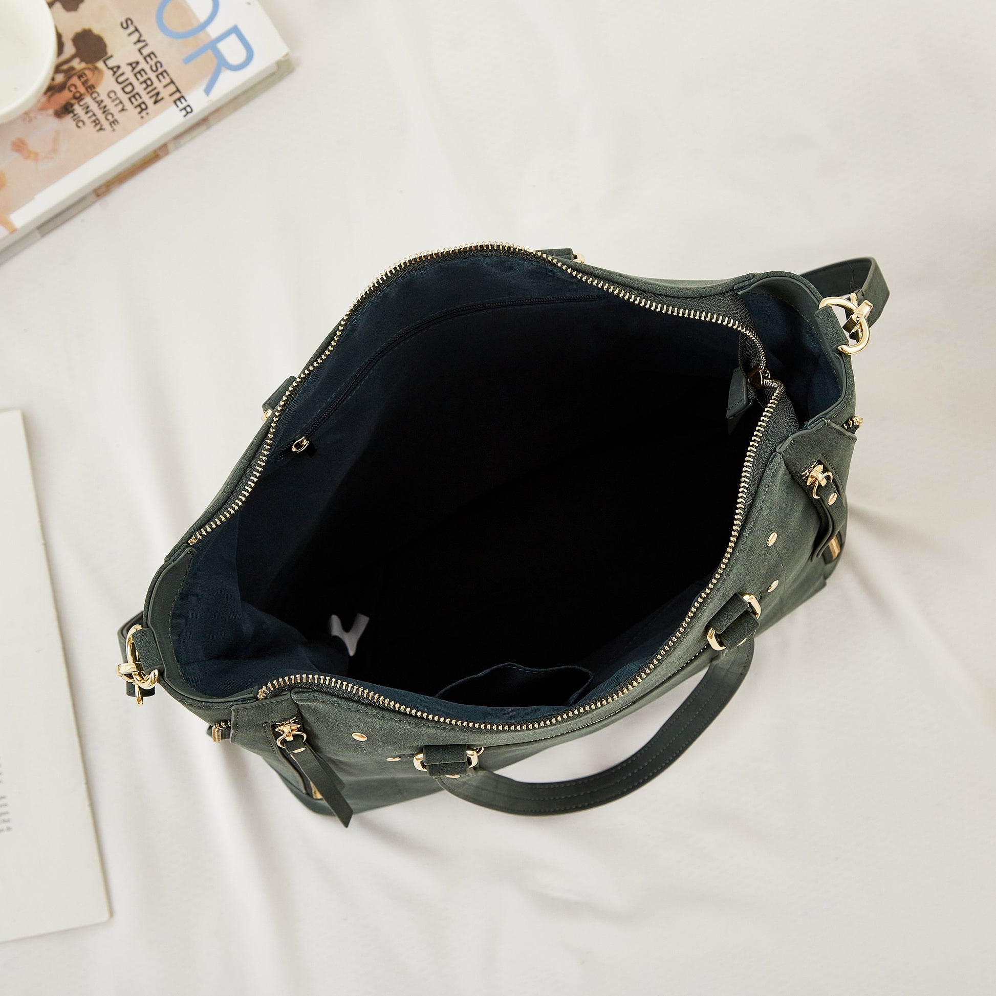 Available in sleek black for timeless appeal and deep emerald green for a refined pop of color, this bag gives you the freedom to match your personal style. Its dual design — sturdy top handles and an adjustable shoulder/crossbody strap — allows you to switch effortlessly between polished hand-carry sophistication and hands-free convenience.