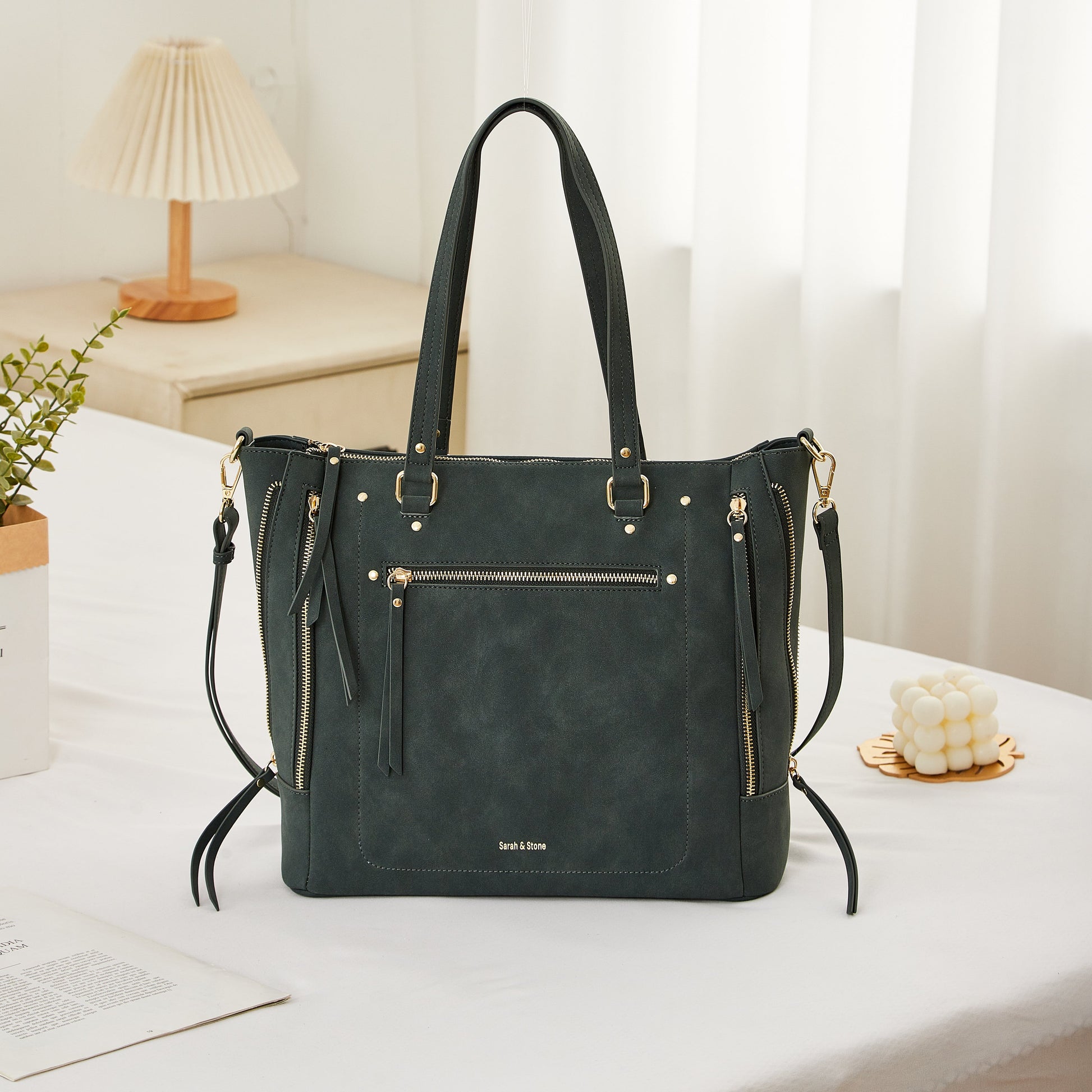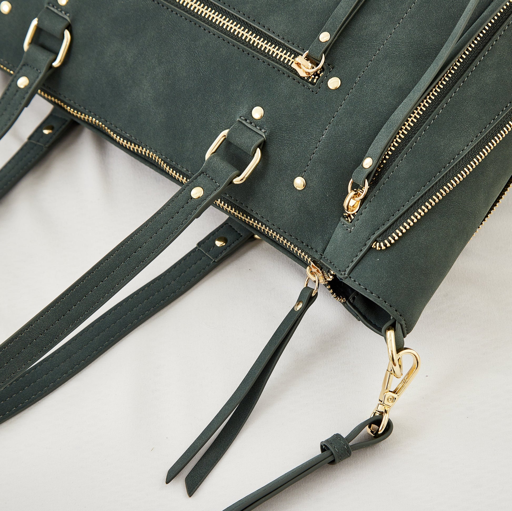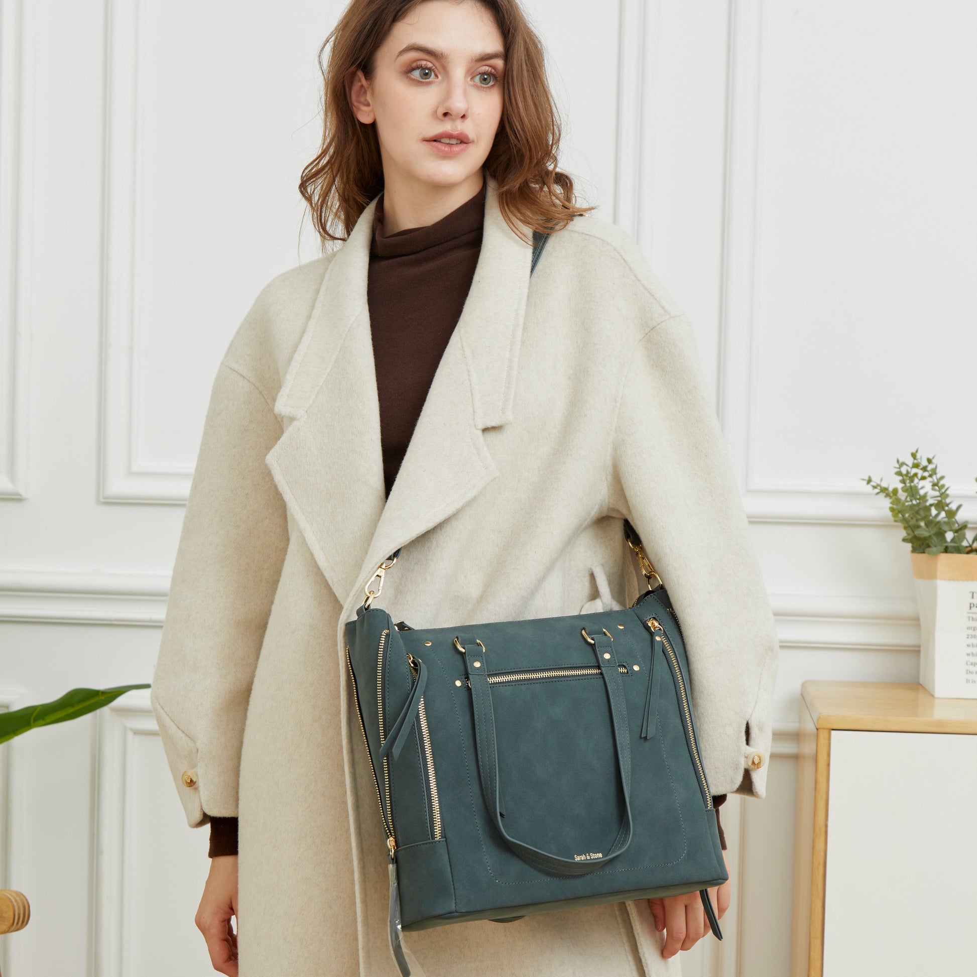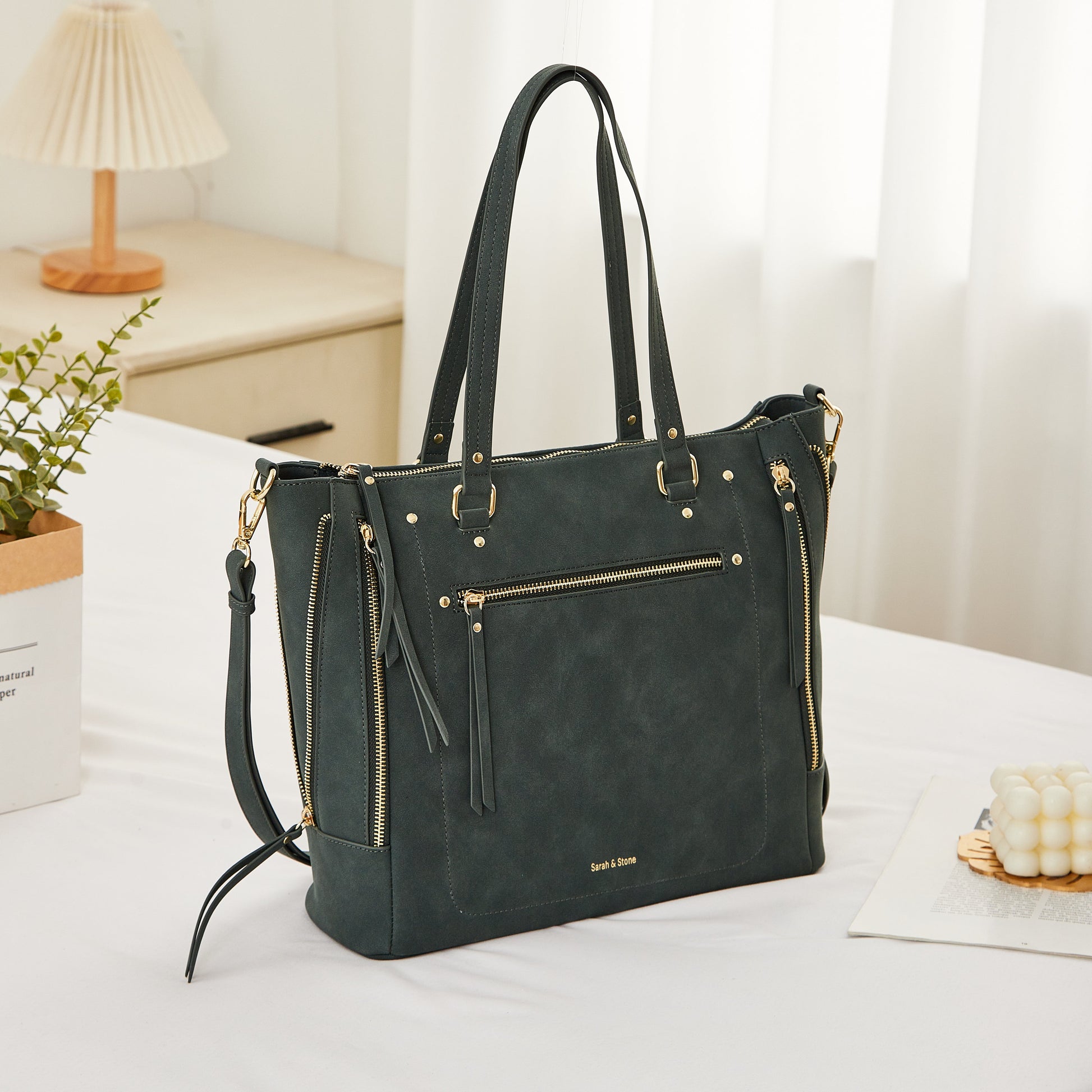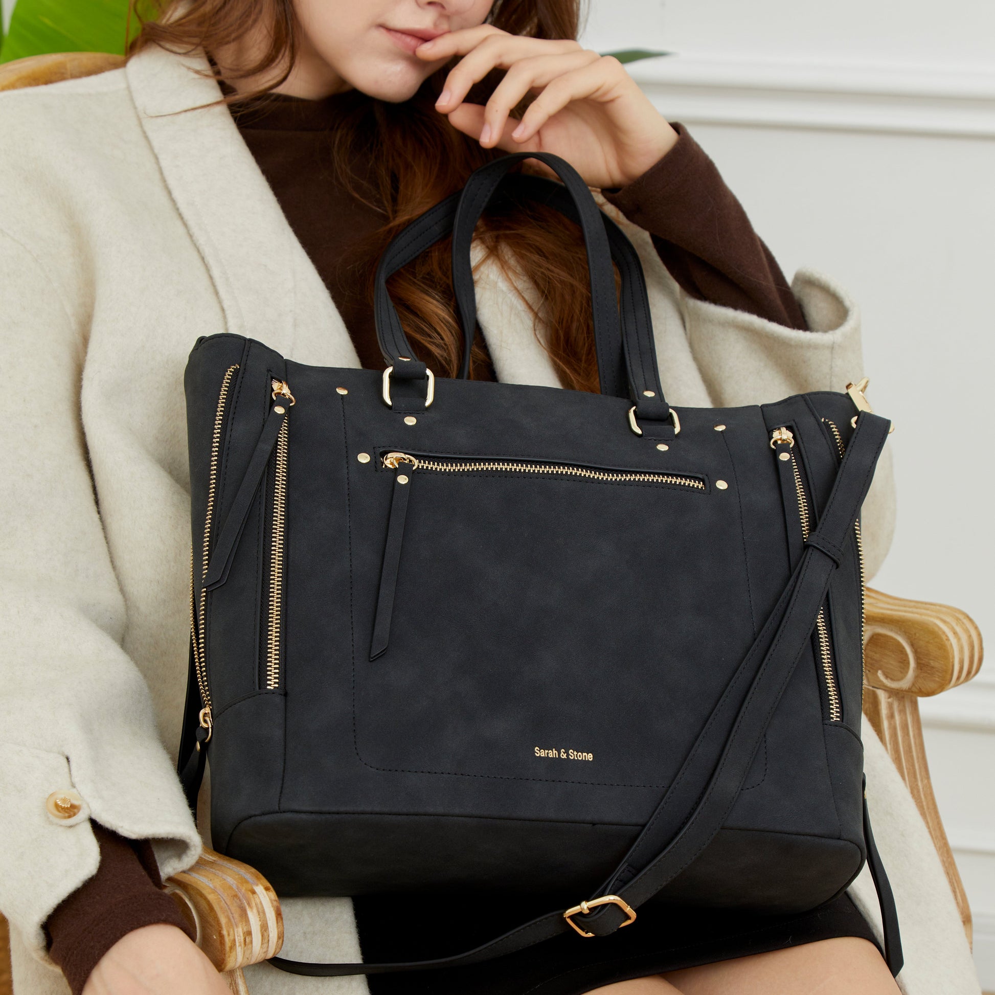 Available in sleek black for timeless appeal and deep emerald green for a refined pop of color, this bag gives you the freedom to match your personal style. Its dual design — sturdy top handles and an adjustable shoulder/crossbody strap — allows you to switch effortlessly between polished hand-carry sophistication and hands-free convenience.