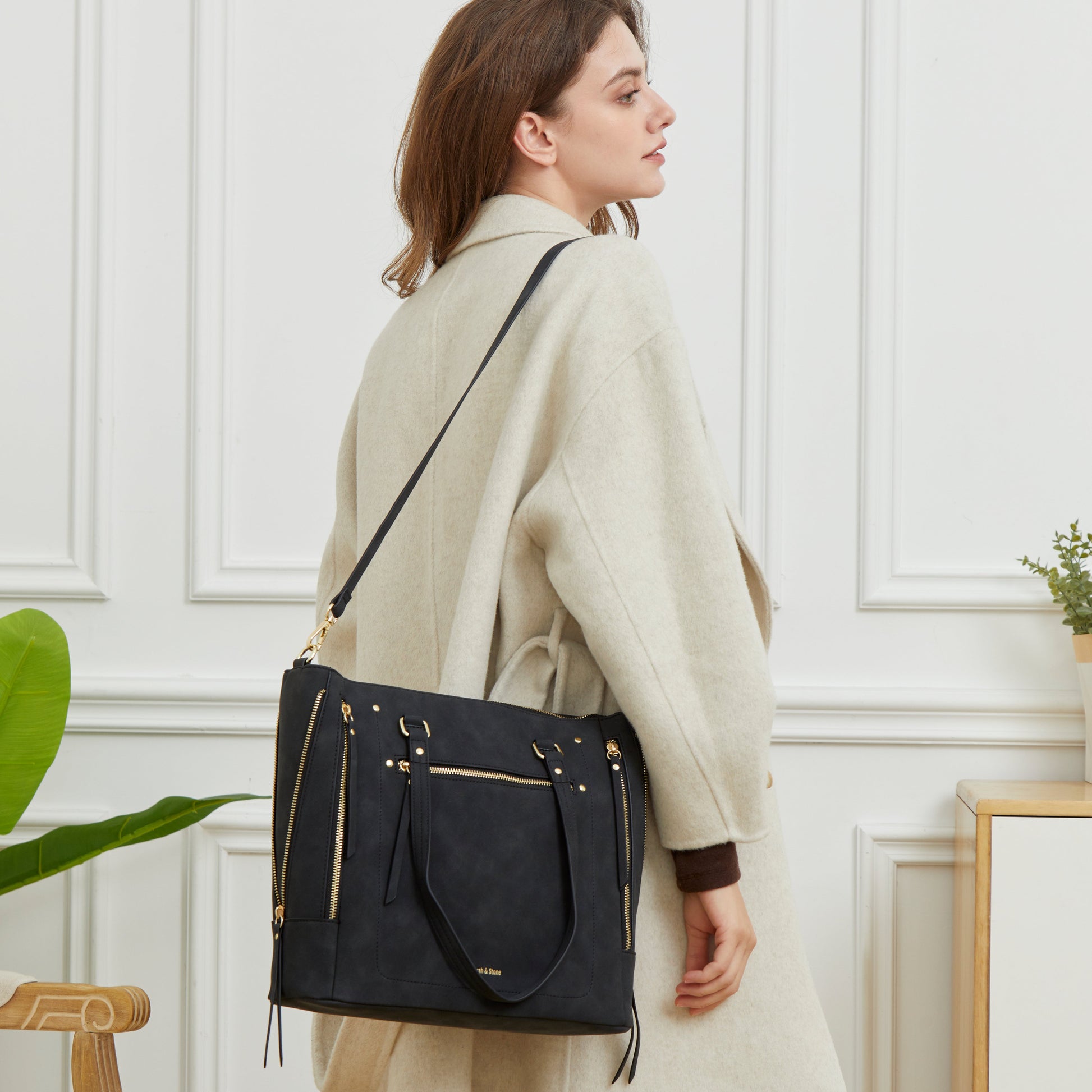 Crafted with a spacious interior and multiple secure zippered compartments, it ensures your essentials stay organized and accessible. From laptops and notebooks to those little must-haves, The Valeria carries it all with grace.